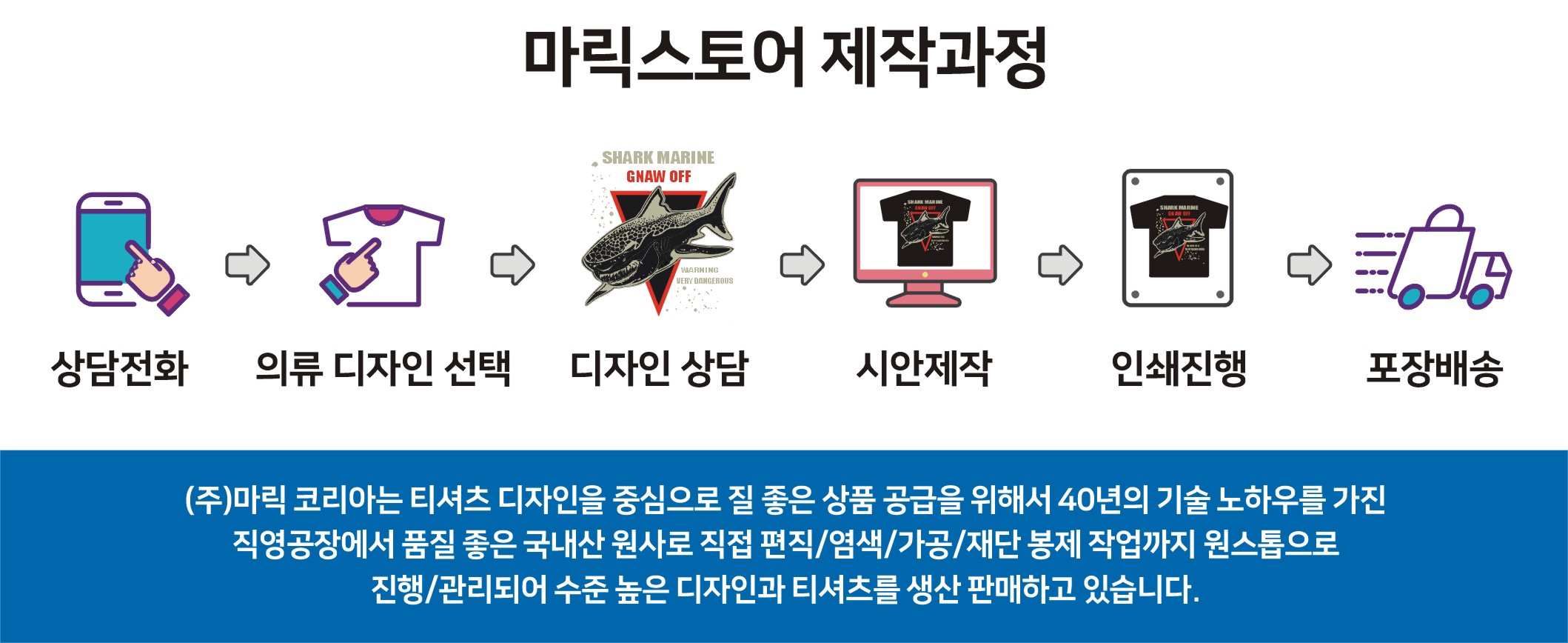 마릭은 밀리터리 티셔츠, 레저스포츠 티셔츠, 동아리 단체 티부터 1:1 개인 맞춤 티셔츠도 가능한 업체입니다.